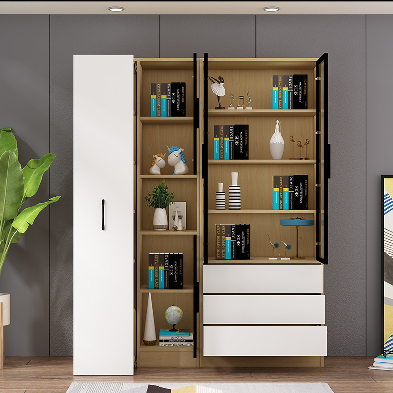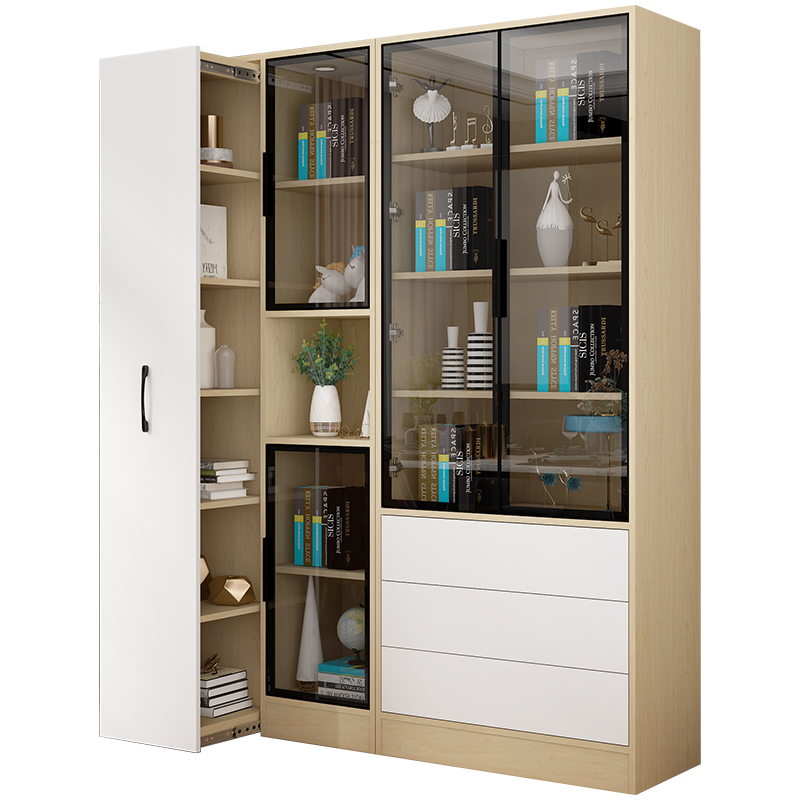 Simple modern study bookshelf Nordic glass door bookcase display cabinet floor rack overall bookcase storage cabinet