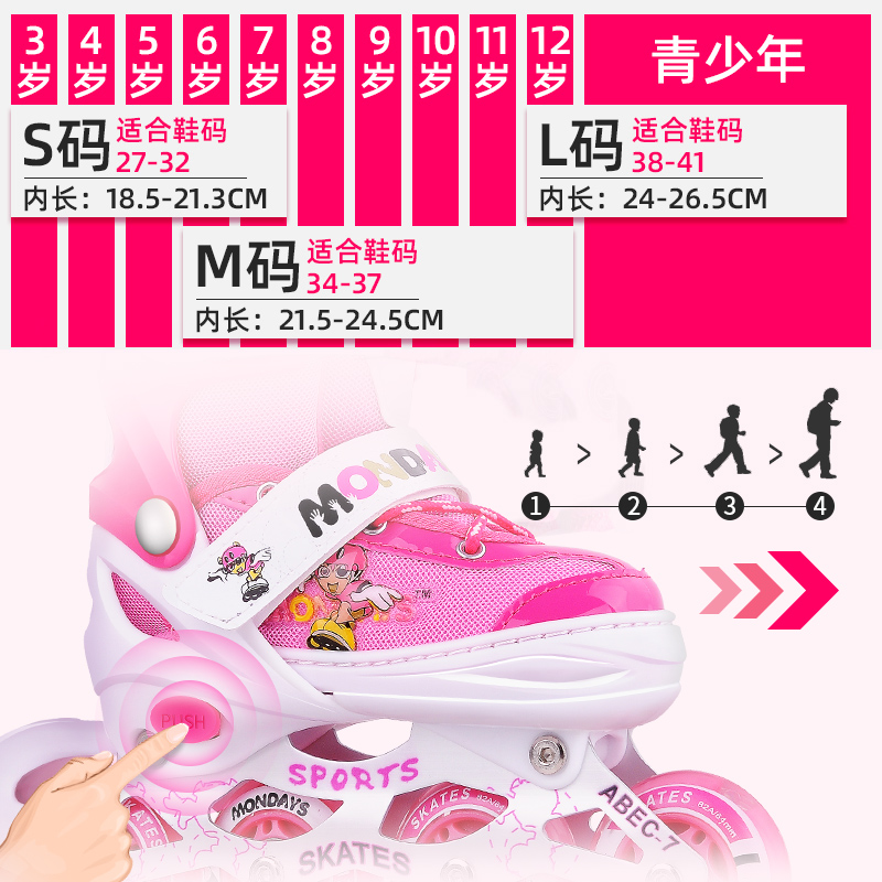 Mandis leave skates children's full set boys and girls roller skates beginners children's in-line wheel adjustable
