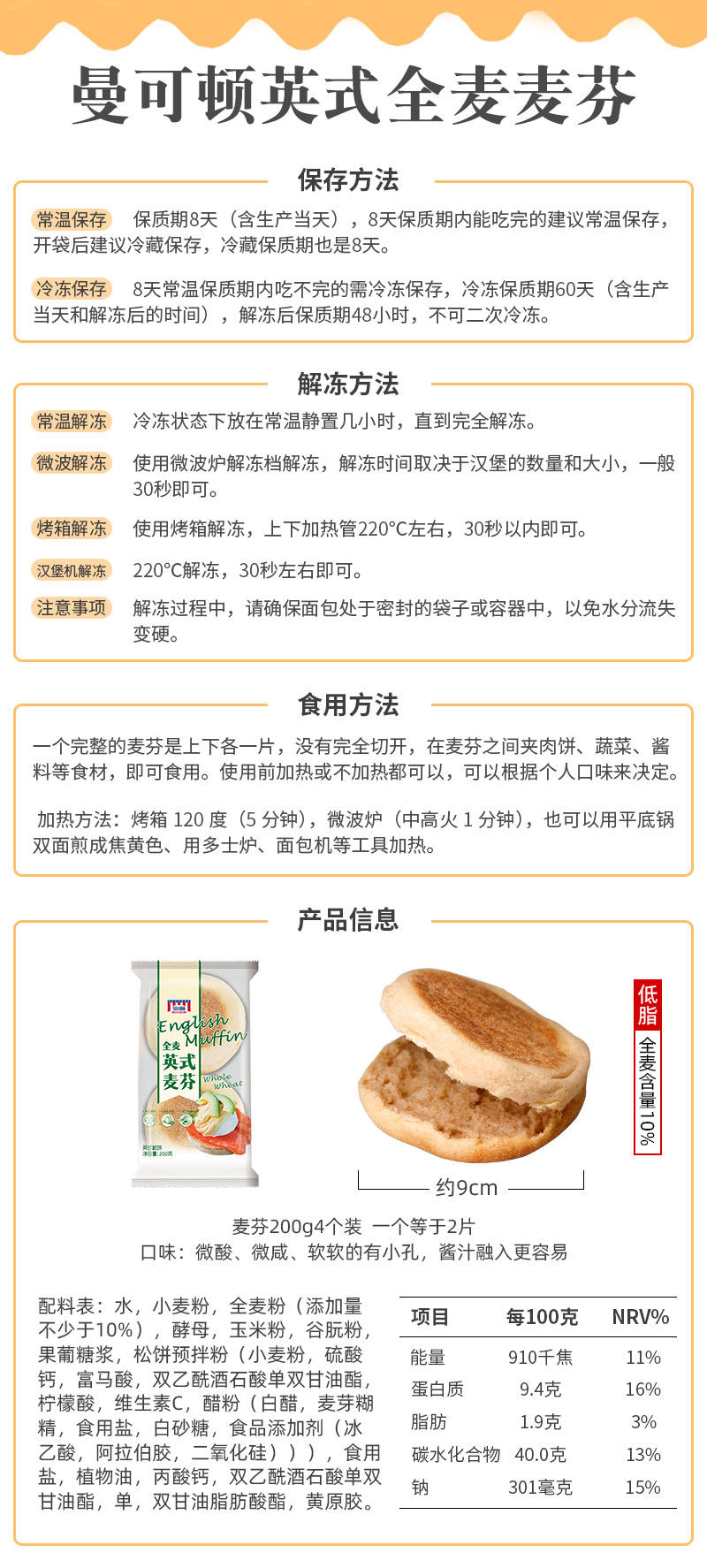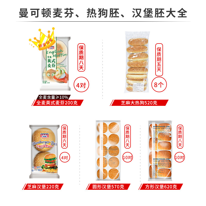 Mancoton whole-wheat low-fat muffin Muffin wheat perfect bread hot dog embryo commercial hamburger embryo DIY breakfast