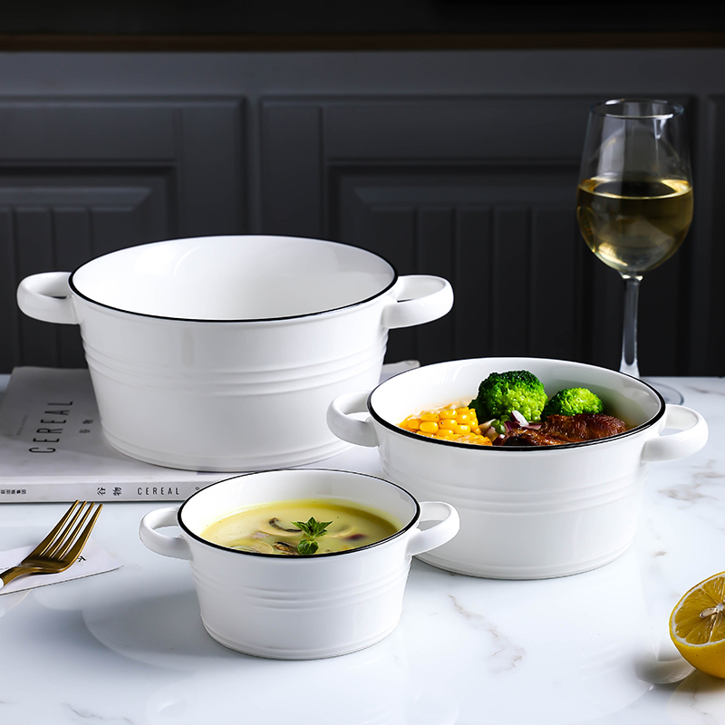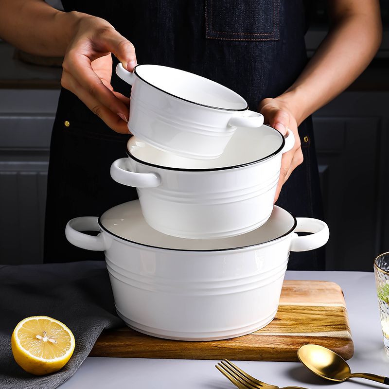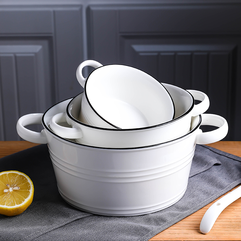 Underglaze black line two ear soup pot - small size Underglaze black line two ear soup pot - medium size Underglaze black line two ear soup pot - large