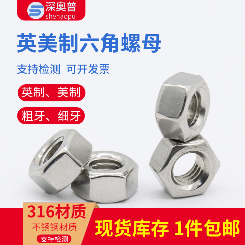 316 stainless steel inch fine tooth hex nut American screw cap Daquan 1 4-20 5 16 3 8 1 2