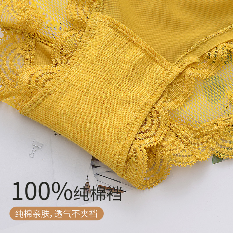 Low waist sexy lace panties women ice silk transparent mesh women temptation briefs breathable cotton bottom file thin