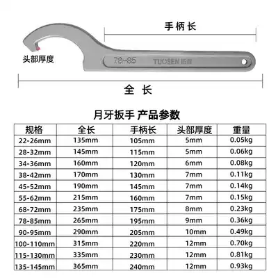 Crescent wrench 22-26 moon wrench 28-3 2 moon wrench 34-3 6 moon wrench 38-4 2 moon wrench 45-5 2 moon wrench 55-6 2 moon wrench 68