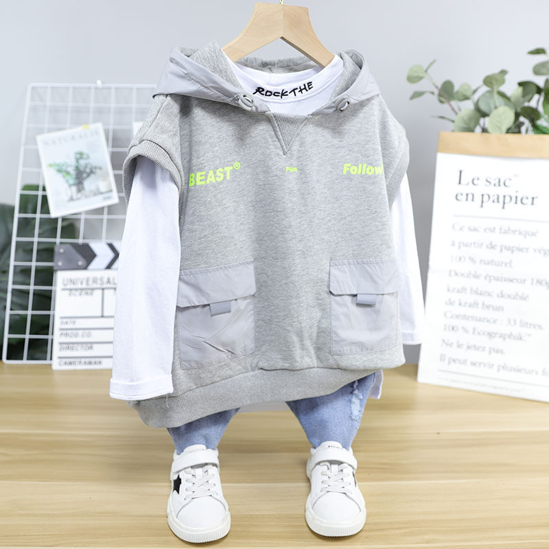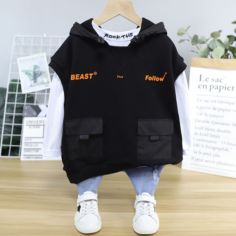 Ushidododo 2020 Autumn New Children's Tops Boys and Girls Loose Outerwear Vests Hooded Sweatshirts 32369