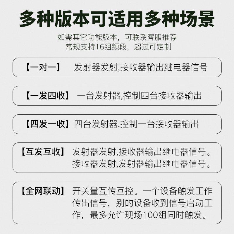 One-to-one (enhanced version) mutual sending and receiving (enhanced version) one-to-one (fast version) mutual sending and receiving (fast version) transmitter (enhanced version) receiver (enhanced version) full network linkage, one price 4 channels