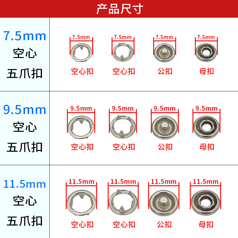 High foot five-claw buckle hollow button button buckle metal climbing suit children's clothing baby mother and baby buckle without seam