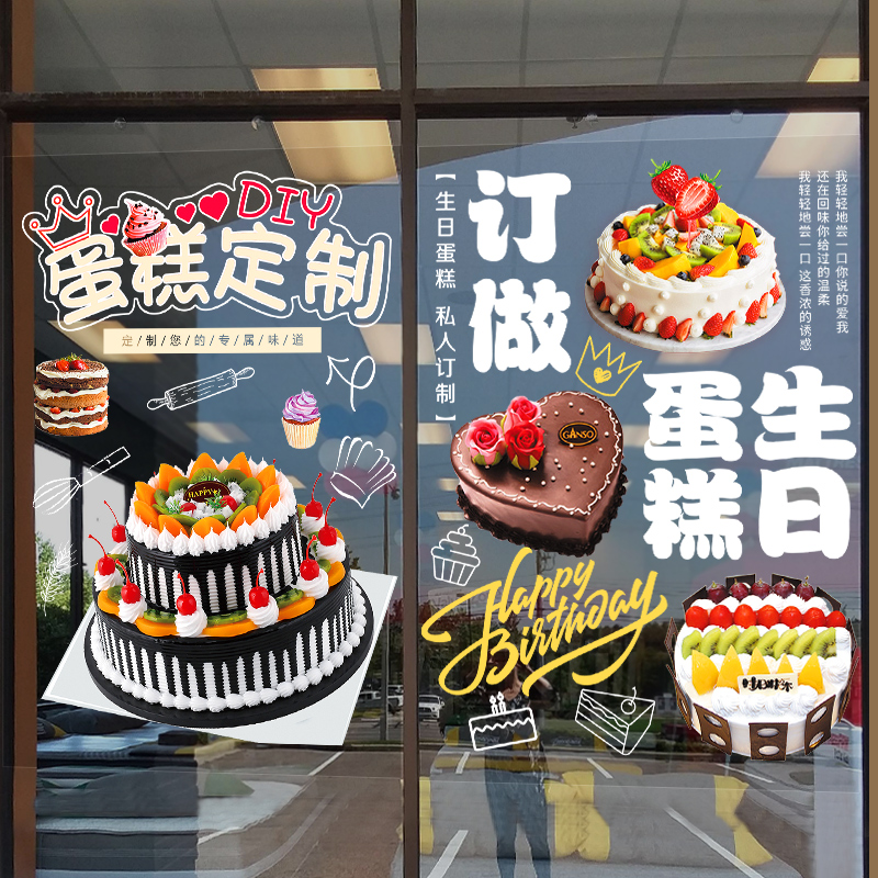 Baked bread birthday cake custom glass stickers wall decorated flower wedding creative paperwork window poster
