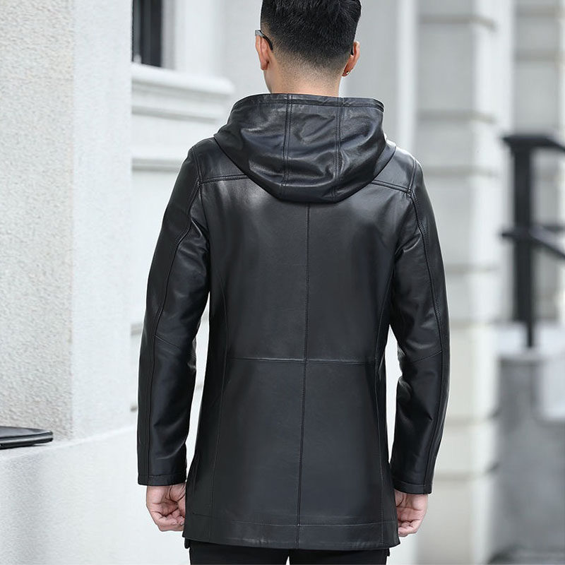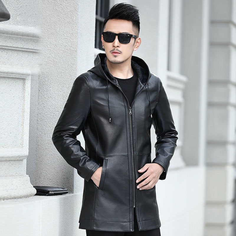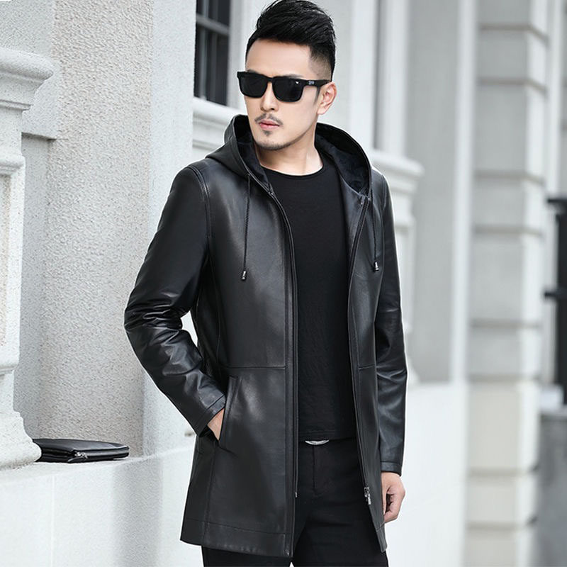 Haining fur coat for a long handsome sheep leather jacket for men with a hat coat