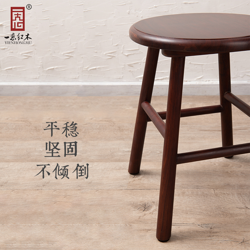 One-en mahogany new Chinese-style new log-colored round stool modern Chinese-style stool home living room low stool makeup stool