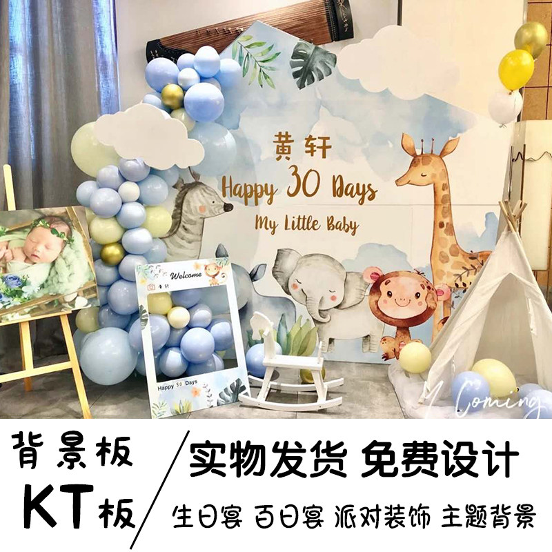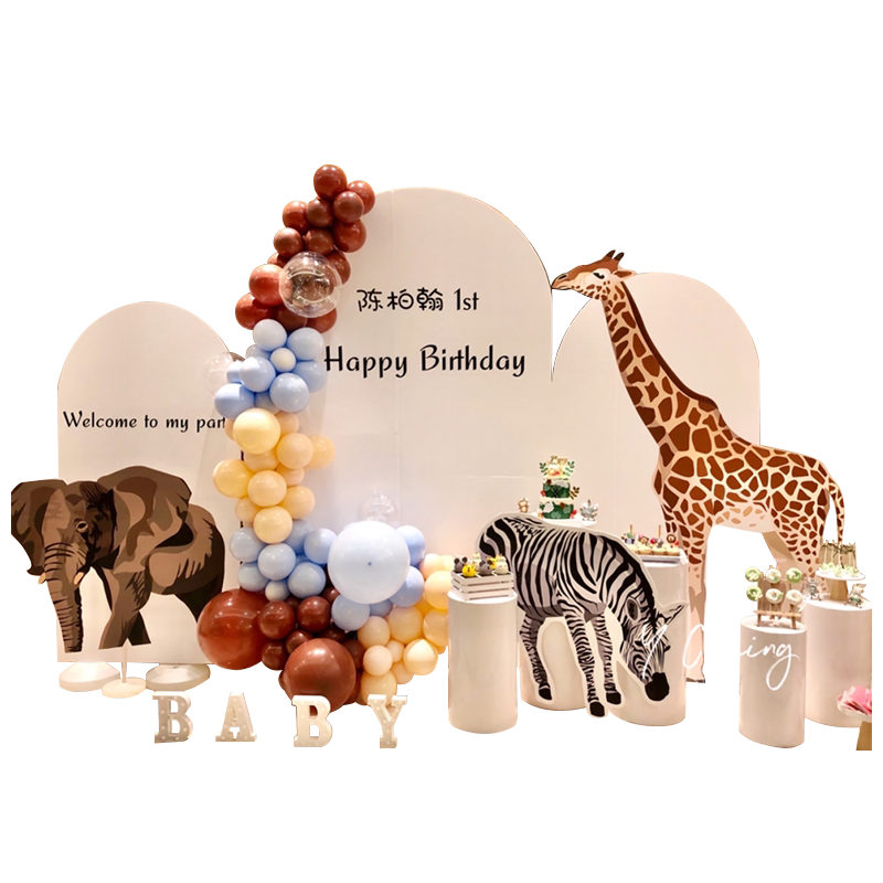 Baby's Birthday One-Year Party Balloon Hundred-Day Banquet Full Moon Decoration ins Forest Animal Backwall