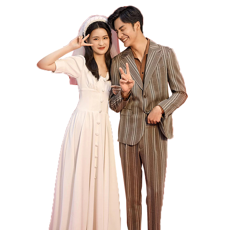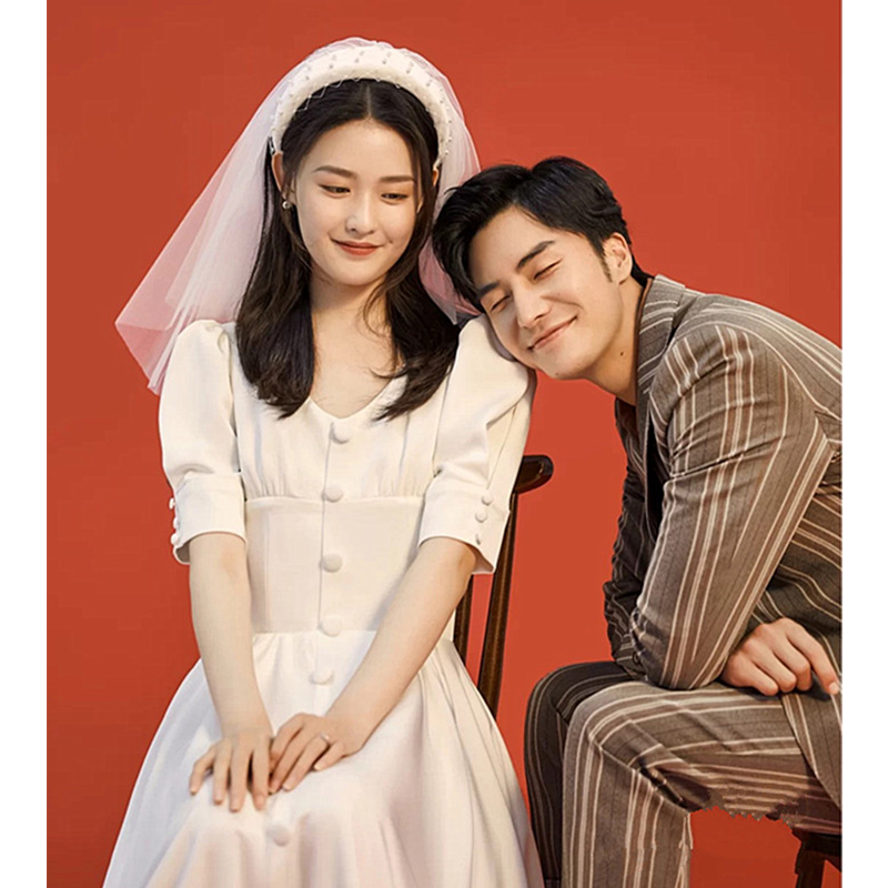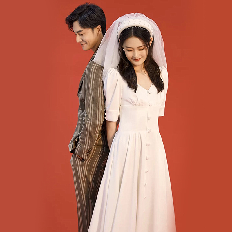 Bride Married Wedding Dress French Retro Simple Limited Limited Temperance Little White Dress Outdoor Brigade Satin Dress