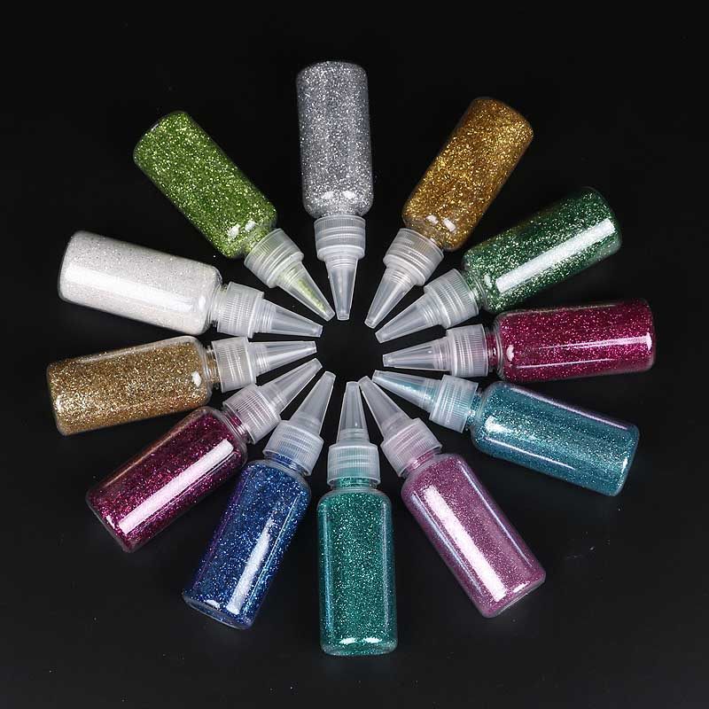 Mouth bottle 12 colors of dazzling glitter powder send glue + brush