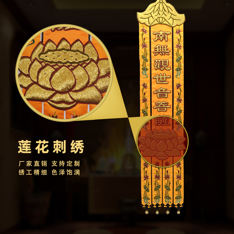 Temples and monasteries decorated with embroidered Buddha flag hanging banner embroidered flower flag two meters a counterpart convex gold character lotus flower flag