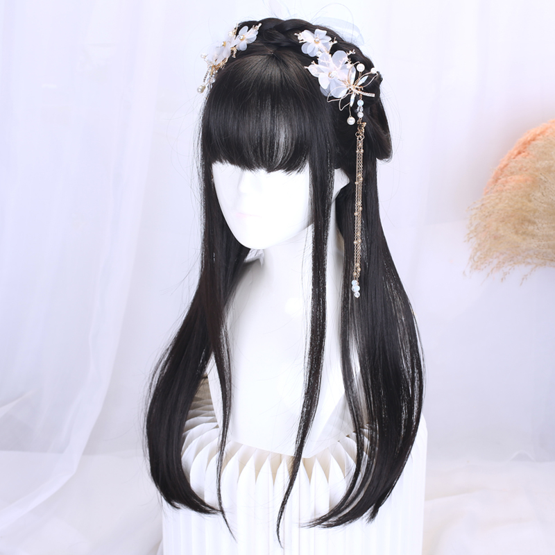 lolita wig woman long hair sweaty gust roletta fix face tennis red black long straight daily soft girl jk fake fur woman