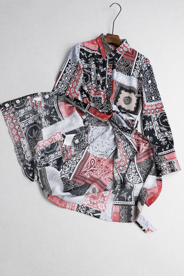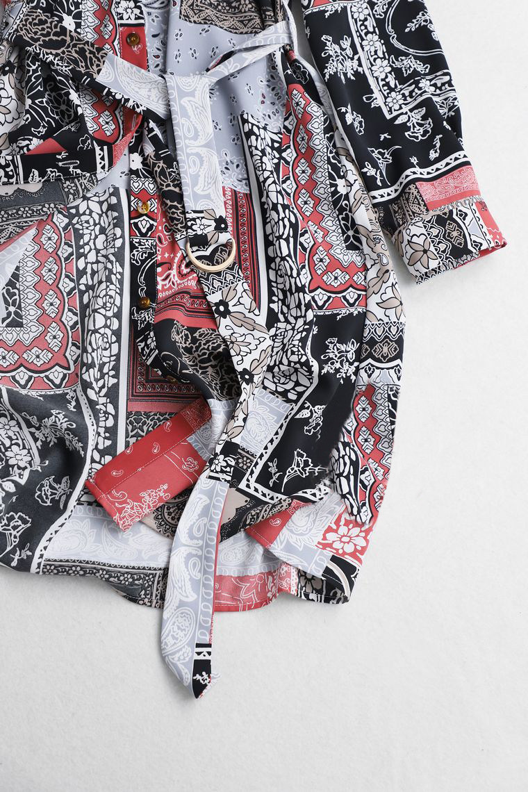 D42 Original DAN Early Spring New Chicken Fried Chicken Flash Printing Waist Shirt Dress