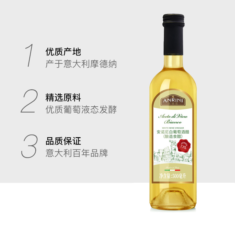 Italian original import Annoni white wine vinegar 500ml white vinegar fruit vinegar brewed edible vinegar condiment