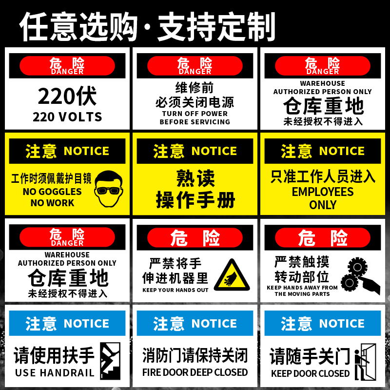 It is forbidden to extend the hand into the machine ID card warehouse replaces without authorization to enter high pressure danger No smoking fire touch mobile part warning signs beware of scalping prompt signs warning signs