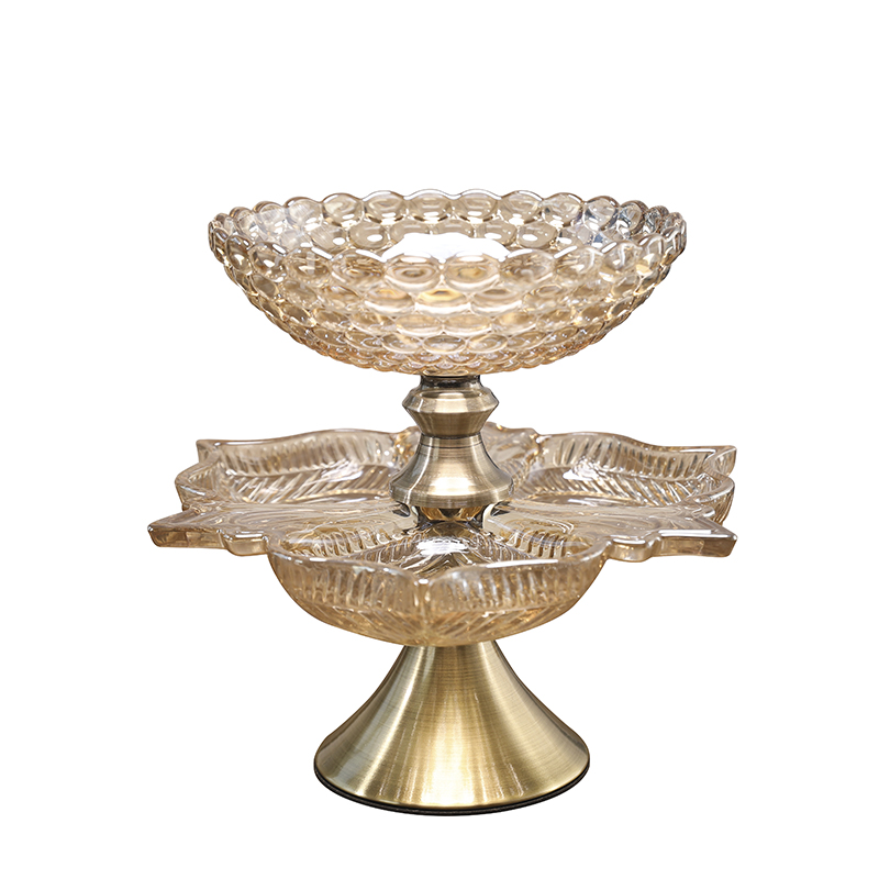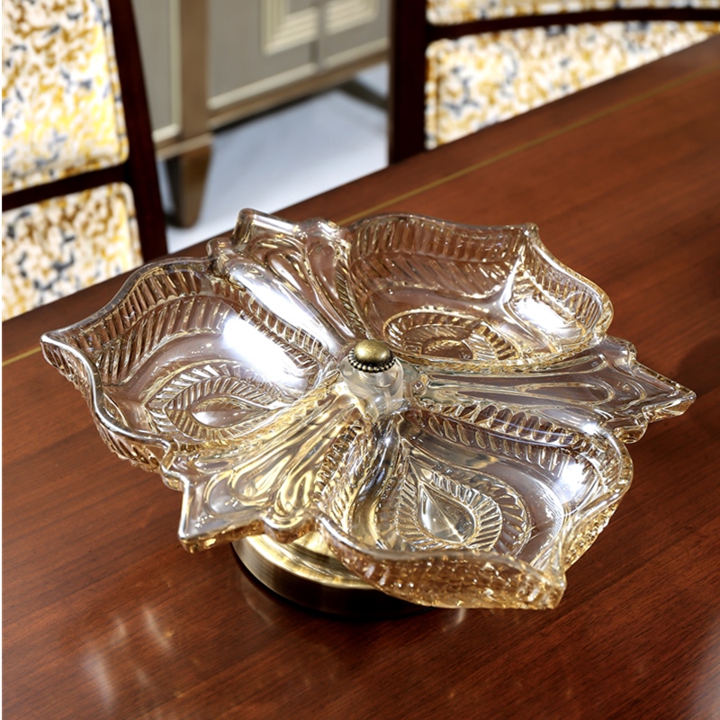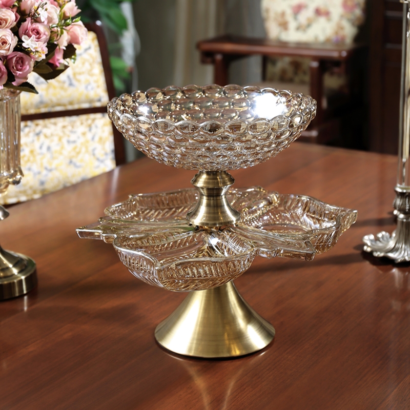 Fruit plate European-style luxury high-end crystal fruit plate petals double-layer glass compartment fruit plate American-style living room home tea table