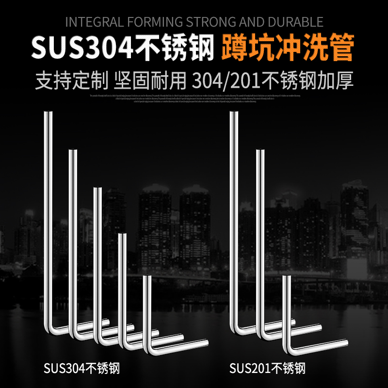Stainless steel 7 words flush water pipe 304 stool valve L type flush wash pipe electroplating 1 inch drain accessories squat pit 32 bend