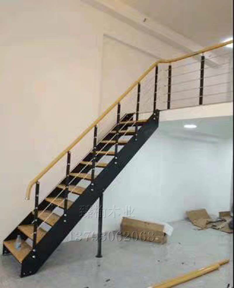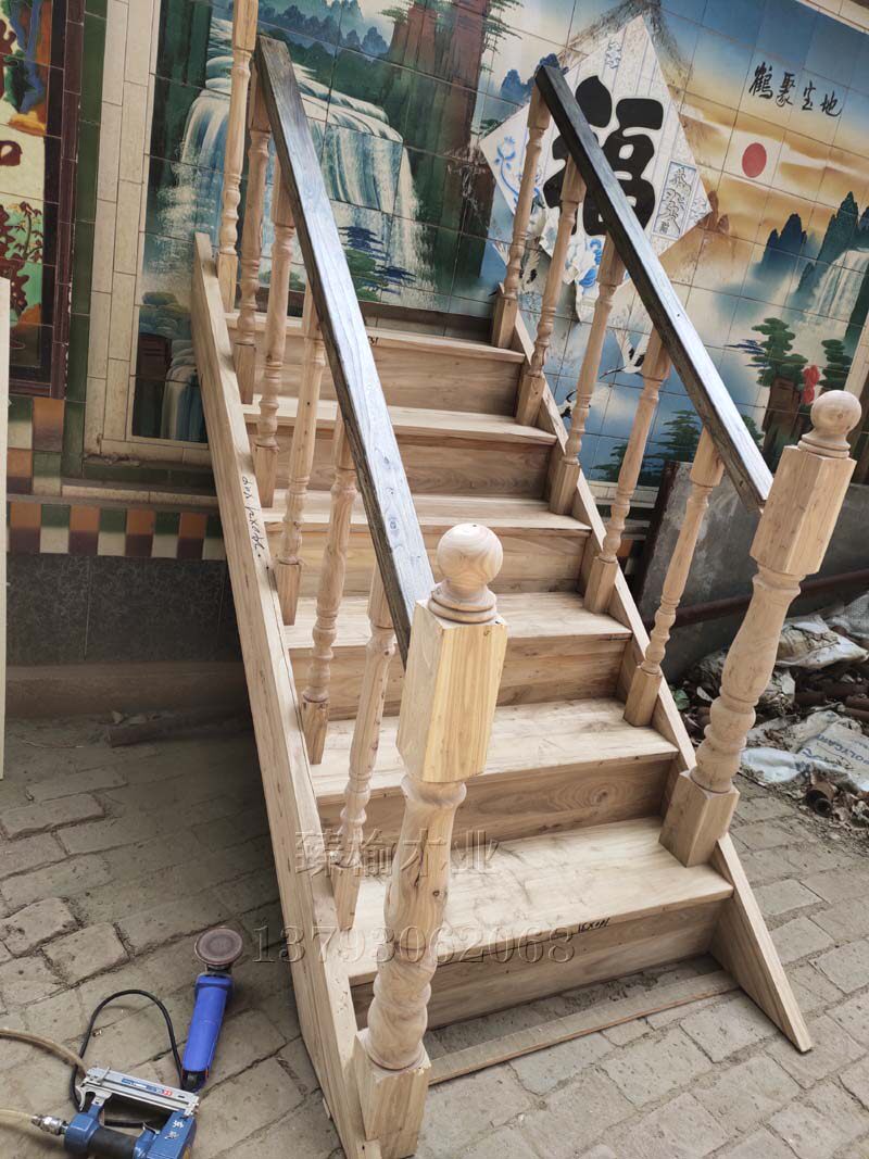 Customized attic villa stair board step board steel frame package cement old elm solid wood board column handrail wood floor