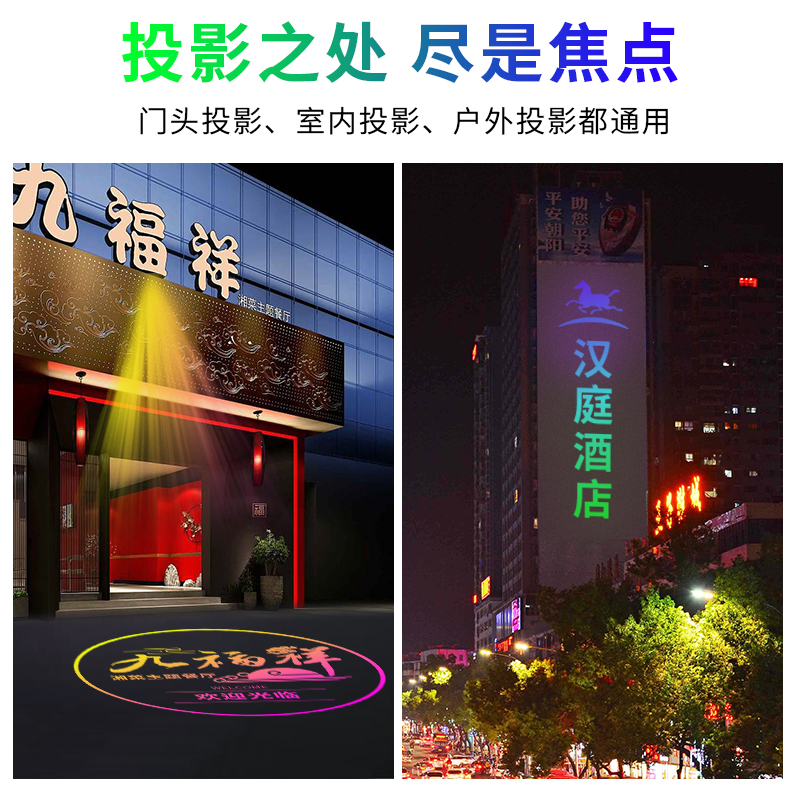 Automatic color projection light Gradient rotation Multi-color logo creative lighting decoration Indoor outdoor advertising projection door sign pattern with text Store shop door laser light customization