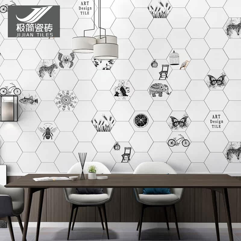 Nordic Hexagon Brick Kitchen Makeup Room Tile Balcony Bathroom Hexagon Floor Tile Small Flower Brick Jazz White Wall Brick