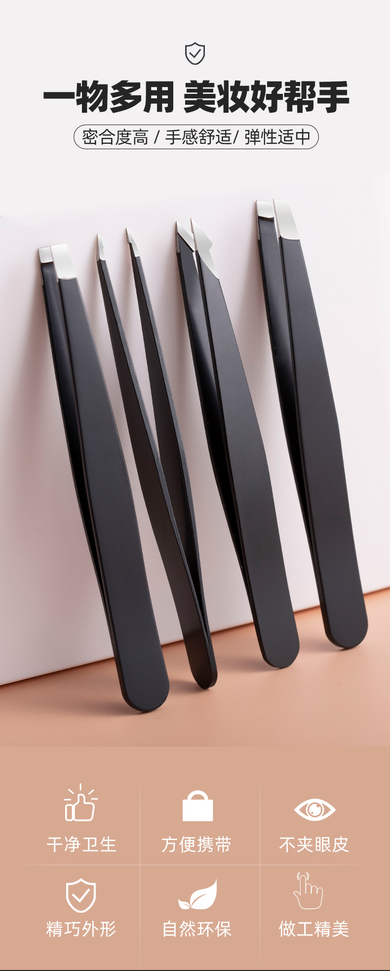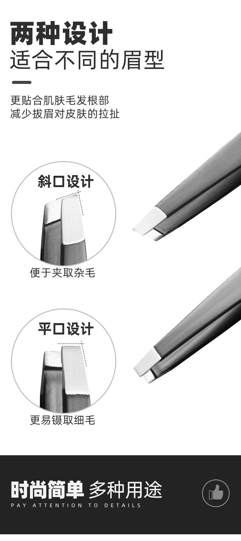 Flat mouth tweezers Leg hair plucking men's beard plucking pliers artifact Eyebrow clip Eyebrow false eyelash clip tool
