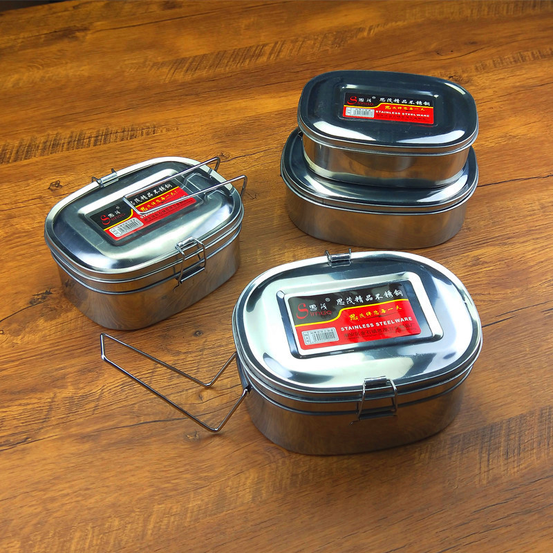 Stainless steel lunchbox adult rectangular cylinder students become a box factory dining cup double-deck fast food box large