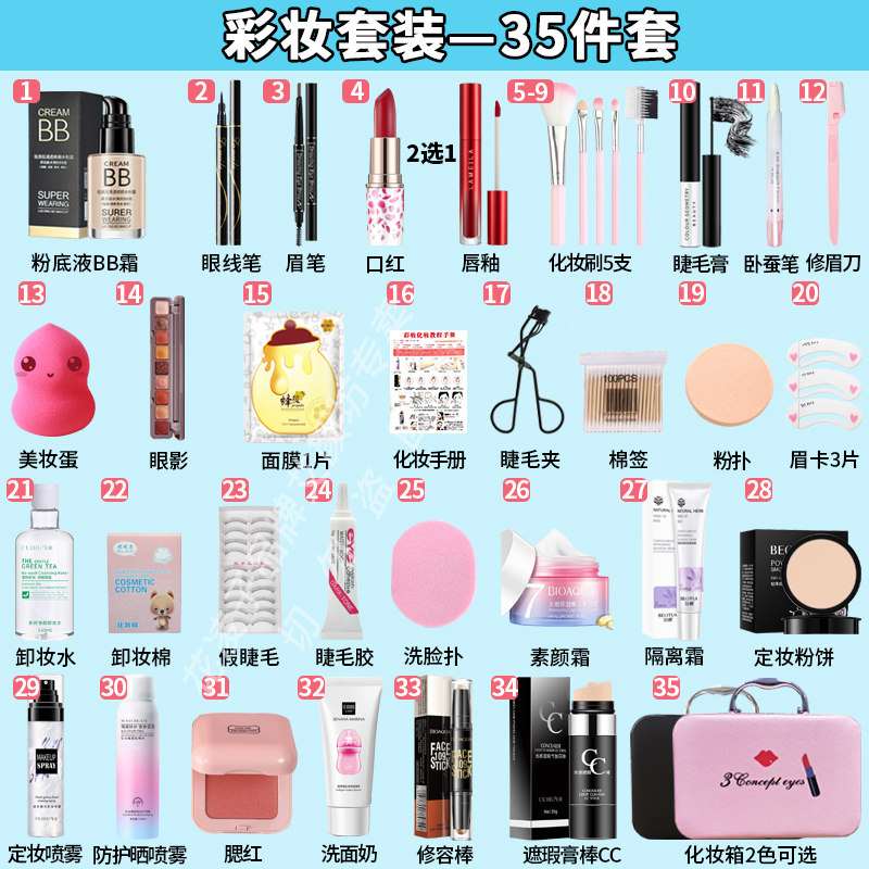 35 pieces of full set of color makeup (upgraded makeup case) 35 pieces of full set color makeup (overvalued recommended) color makeup suit 28 pieces Upgraded Makeup Case 28 Covers Flawless Stick 28 pieces of kit Repairing Stick 2