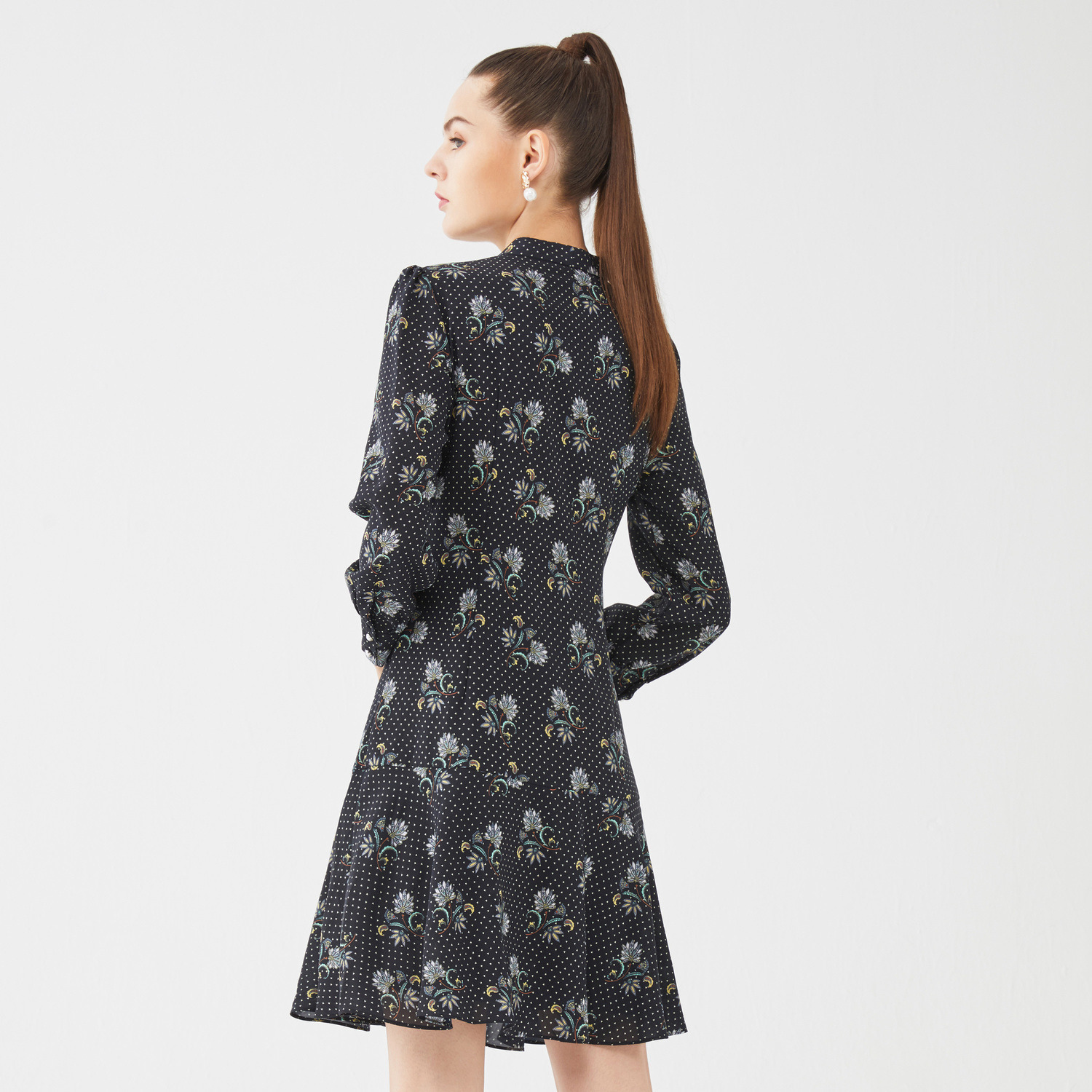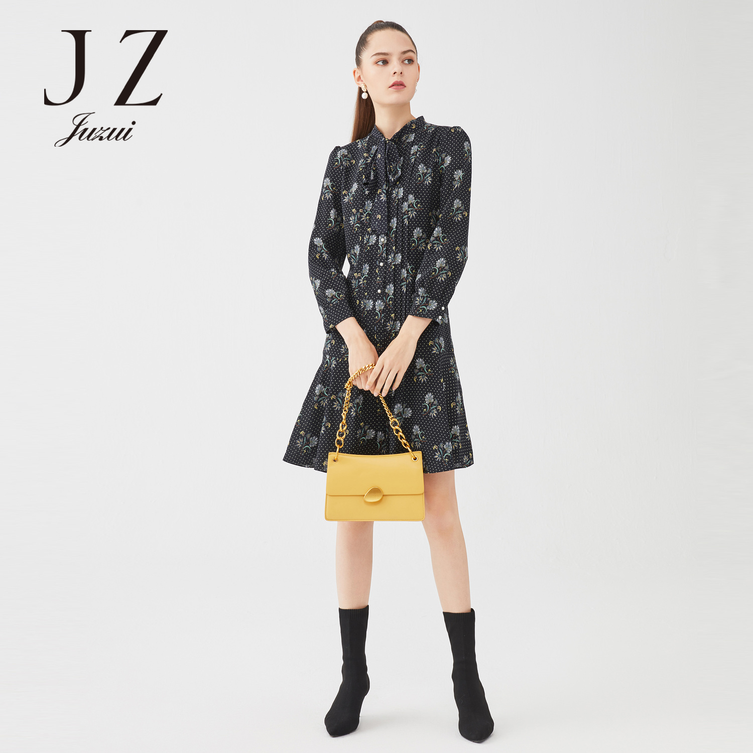JUZUI official flagship store 2021 spring new black floral waist long woman chiffon dress
