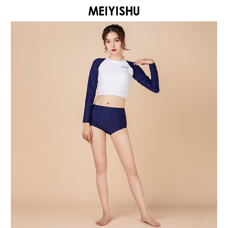 2021 New Girl size cover meat split long sleeve sunscreen sports swimsuit female summer Conservative belly student swimsuit