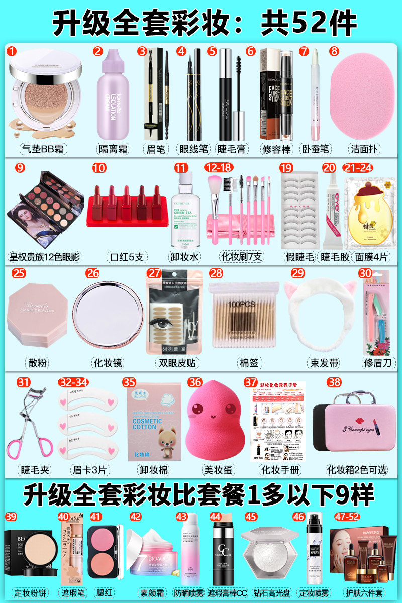 (upgraded version full set of 52 pieces) Natural color (upgraded version set of 52 pieces) Ivory White Air Cushion Natural Color 5 Branches Red Color Makeup 46 Pieces Air Cushion Ivory White 5 Branches Red Color Makeup 46 pieces