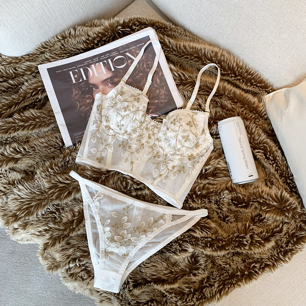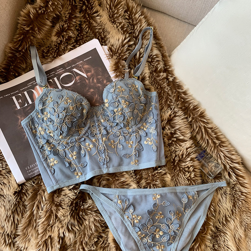 Face-style sexy lace lingerie female hitch outside wearing memory soft steel ring small breasts for a vest-style bra suit