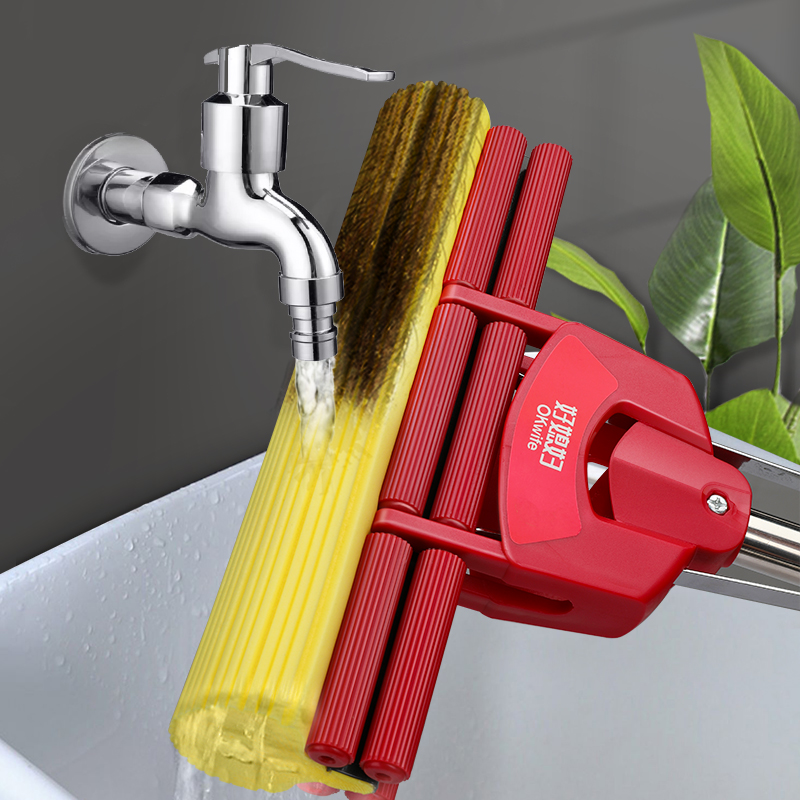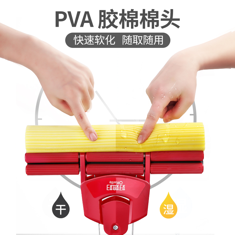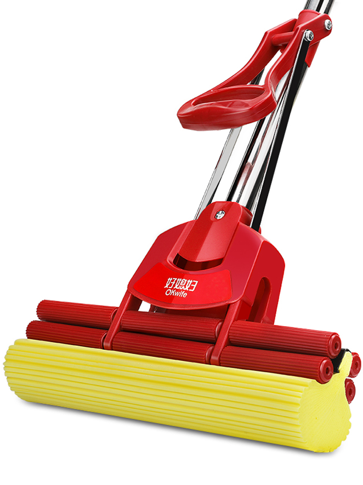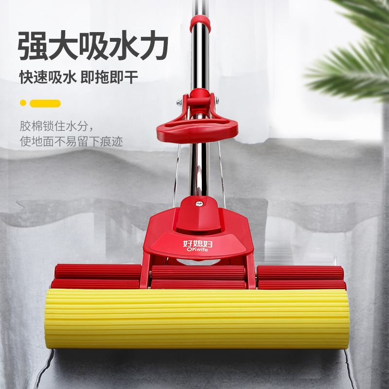 Good daughter-in-law sponge mop household hand-free cleaning water-absorbing water-squeezing mop cloth glue cotton stainless steel tray