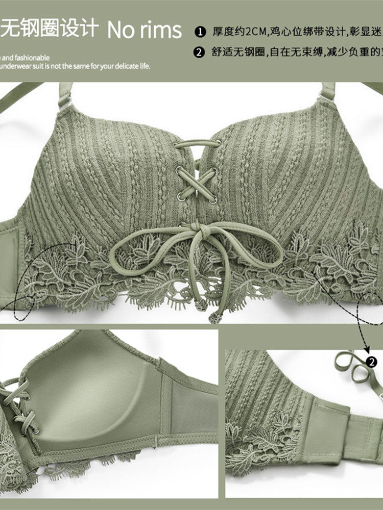 Underwear women's small breasts gather to show big adjustment type to close breasts summer thin section sexual confusion hot no steel ring bra set