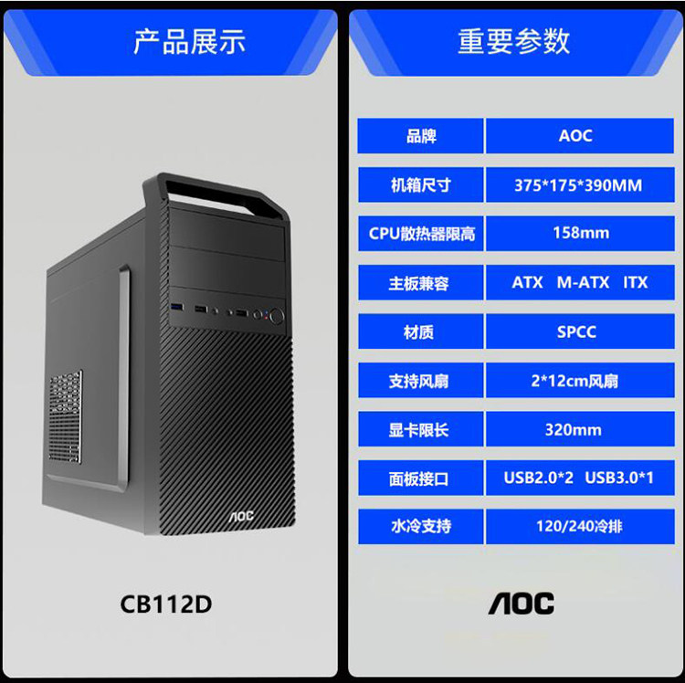 New AOC business computer case portable assembly desktop case U3 backline long graphics card optical drive office home