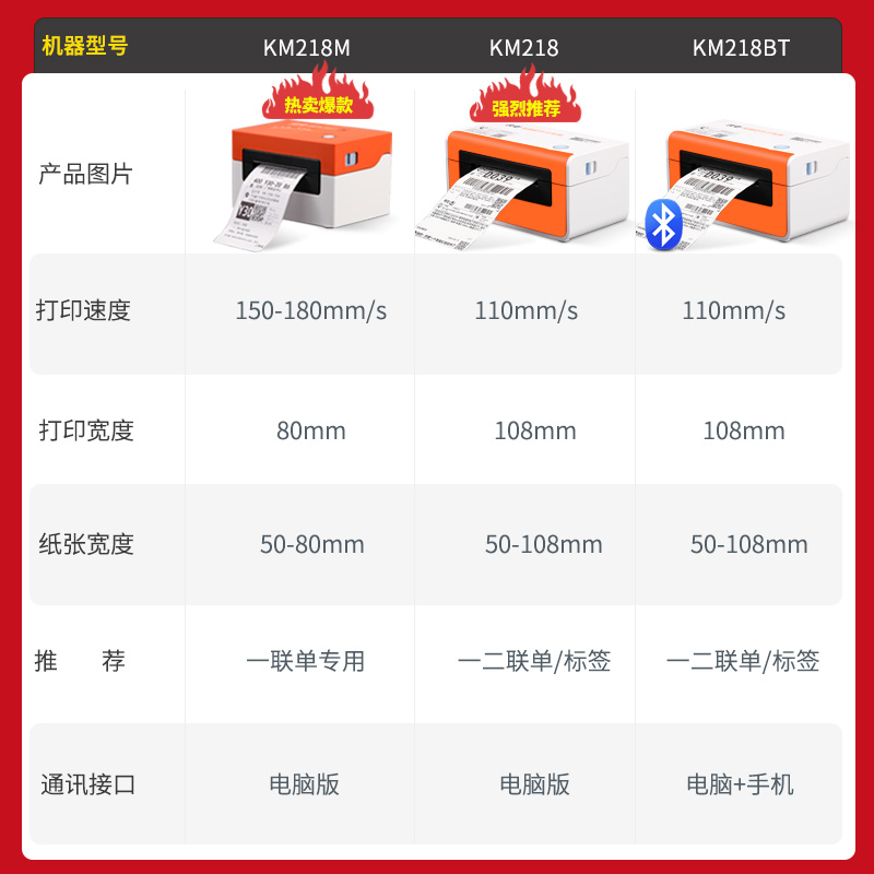 Kuaimai KM218M Thermal Printer Express Electronic Face Sheet Tag Label Small Single Machine Express Universal Portable Electronic Single Barcode Sticker Taobao Commercial Bluetooth Printer