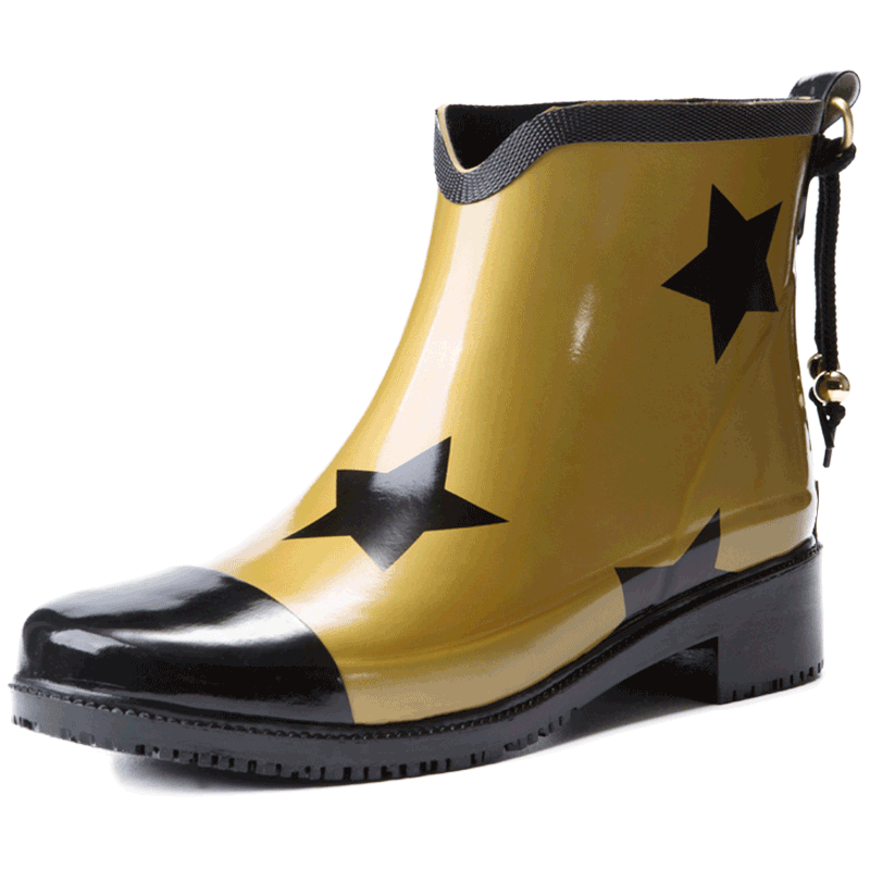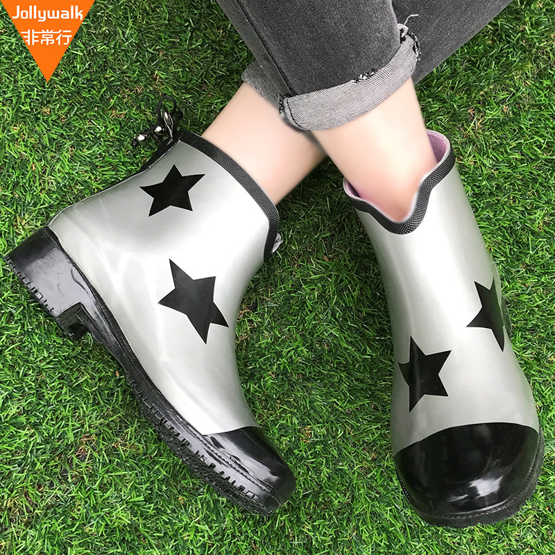 Rain Shoes Women Summer Water Shoes Short Cylinders Glue Shoes Fashion Waterproof Non-slip Water Shoes Women Rain Boots Stars Rain Shoes