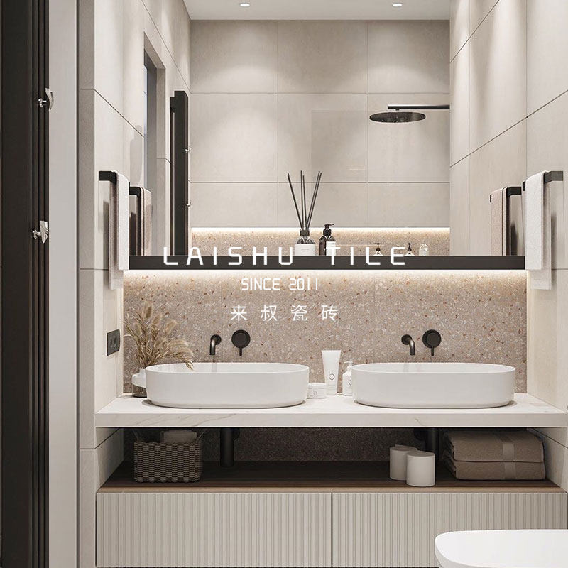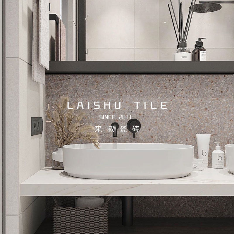 Nordic simple small particle terrazzo tile wabi sabi micro cement brick bathroom bathroom toilet non-slip floor tile