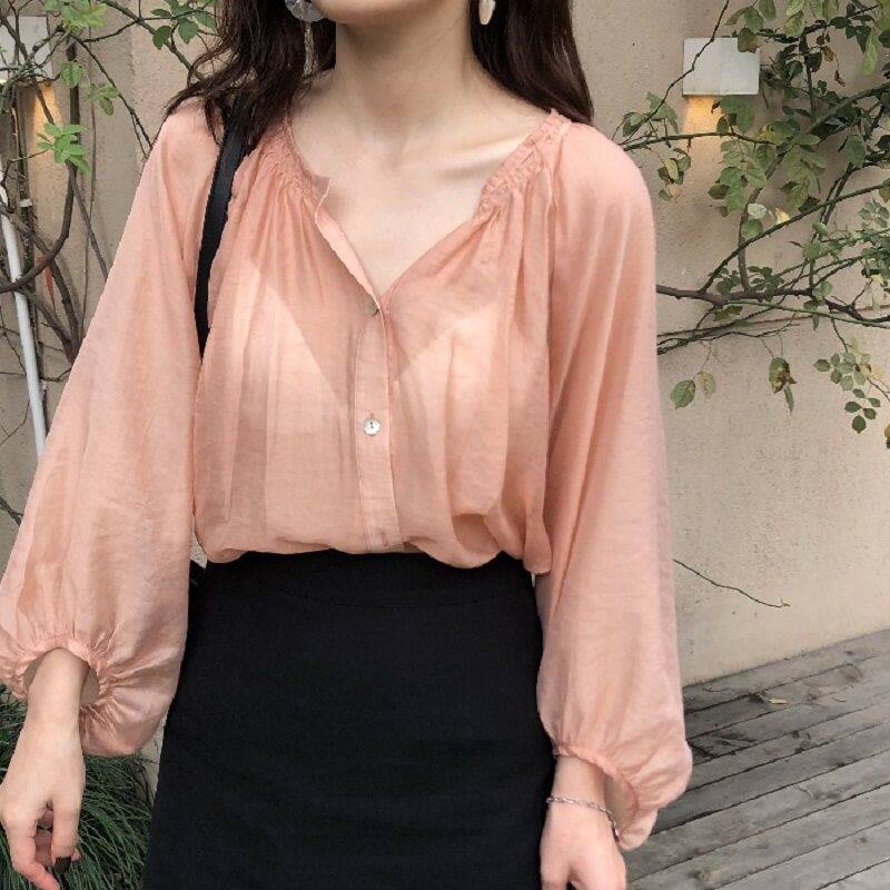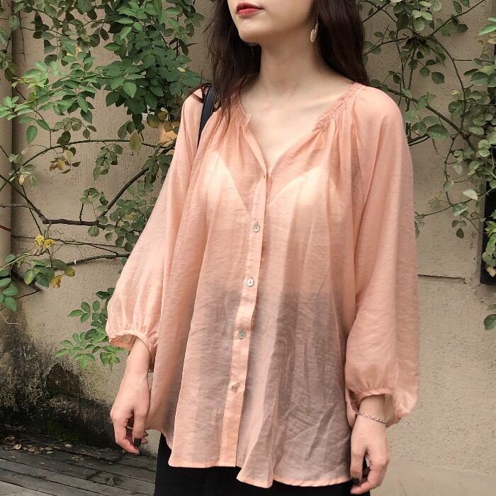 Chiffon shirt women's silk summer thin design sense niche long-sleeved sunscreen port wind top 2021 new women's
