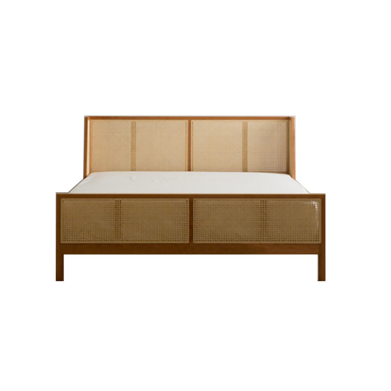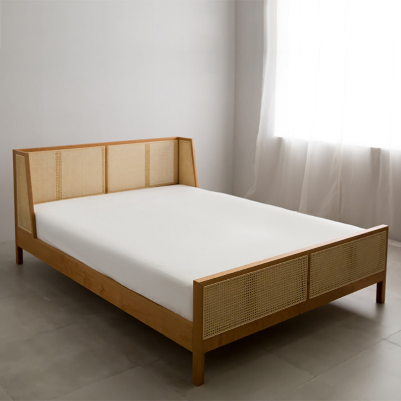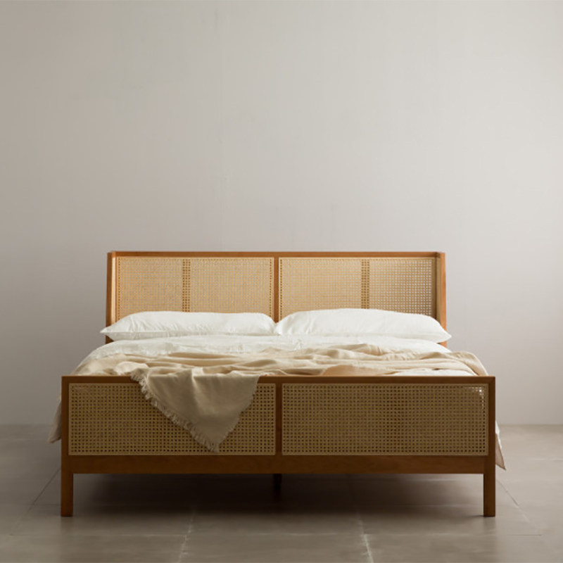 Nordic Japanese solid wood double bed Vintage rattan bed simple modern oak cherry wood master bed 1.8 wedding bed