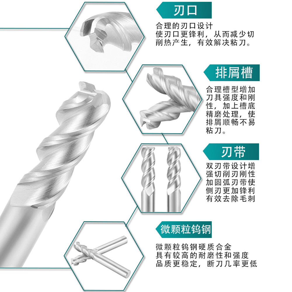 Tungsten steel hard alloy high-gloss aluminum round nose knife lengthened 150 cattle nose milling cutter 10R0 5 12R1 16R3 20