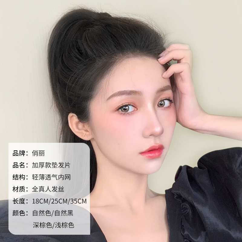 Wig sheet cushion hair root Genuine Hair Fluffy wig patch a piece of unscarred invisible cushion hair Hair Tonic Hair