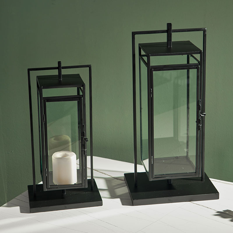Nordic Wind Light Iron Art Windproof Wax Candle Holder Patio Outdoor Hand Candle Lamp Glass Candle Holder Cup Transparent Decorative Pendulum
