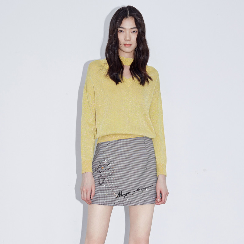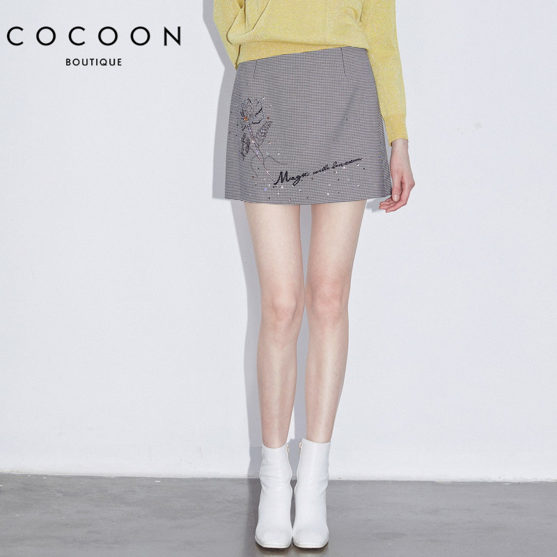 COCOON Cocoon shopping mall with the same 2022 spring and autumn new women's retro beaded houndstooth skirt