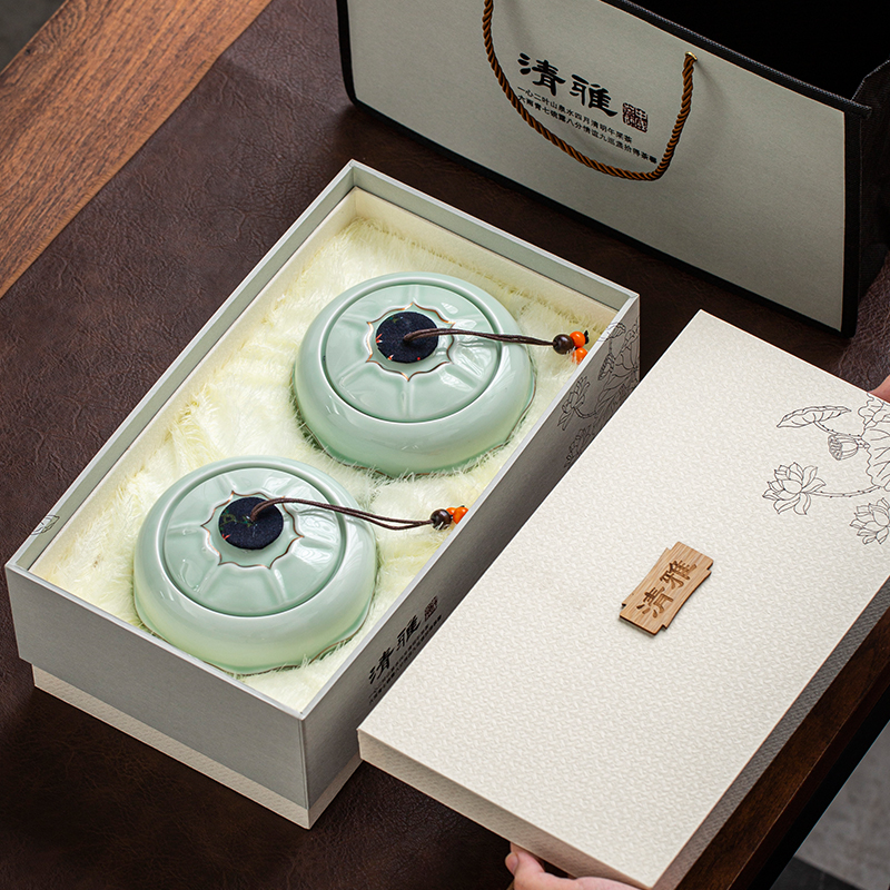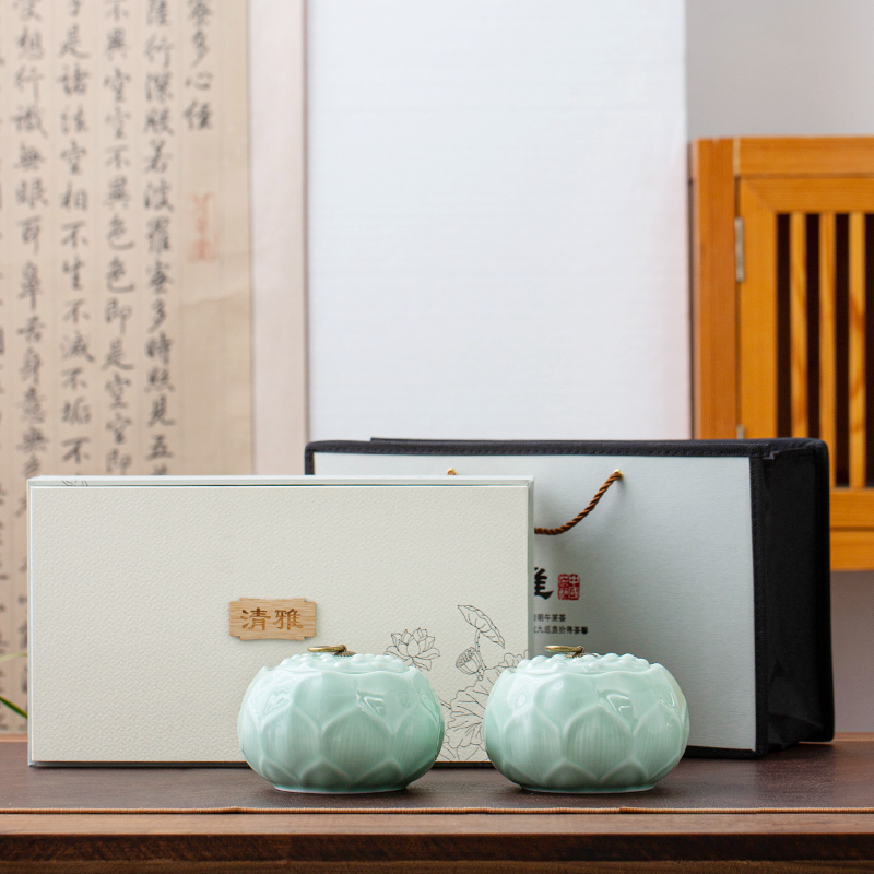 Celadon lotus flower painted gold double pot—elegant gift box celadon lotus double pot—elegant gift box celadon lotus flower painted gold single pot plum green lotus rhyme gold single pot pink green lotus rhyme gold single pot