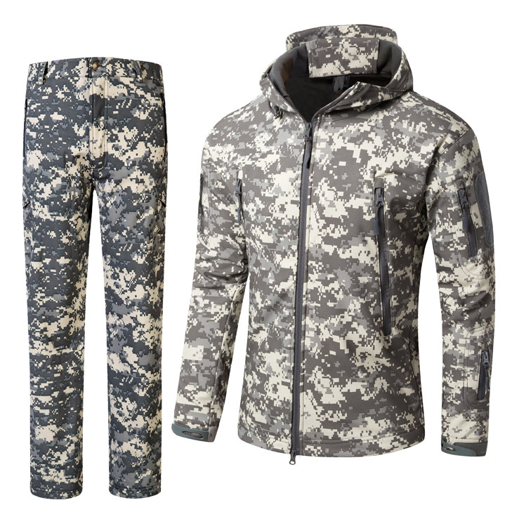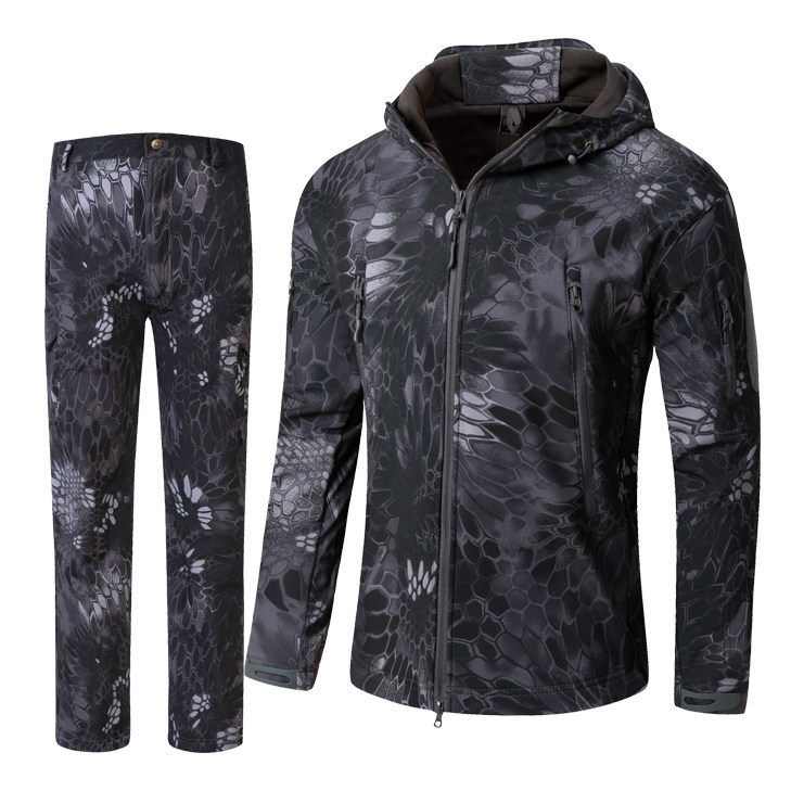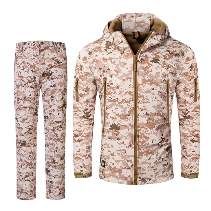 Shark Skin Soft Shell Submachine Suit Pants Suit Men's Camouflate Jacket Outdoor Climbing Fishing Dress Plus Suede Waterproof And Breathable