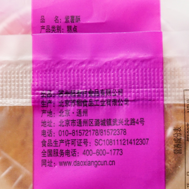 Daoxiang Village Purple Potato Cake Bulk Bag Traditional Pastry Snack Snack Snack Independent Packaging Purple Potato Mud Cake 500g