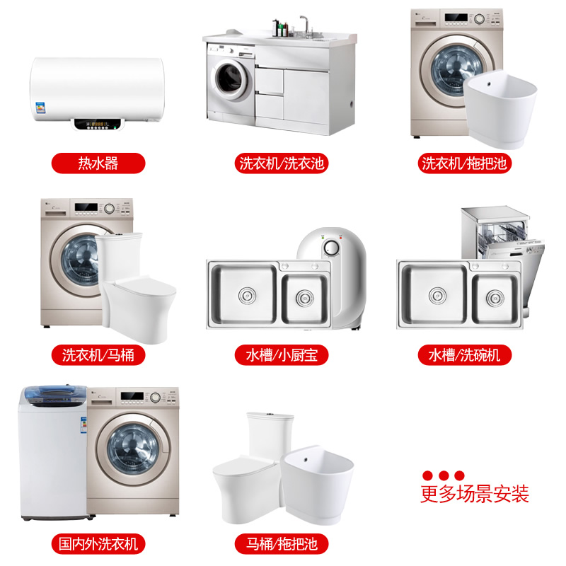 A1 (front drain with rear 4 points) A2 (front drain with rear washing machine connector) A3 (front drain with rear car wash nipple) A4 (front washing machine connector with rear 4 points)