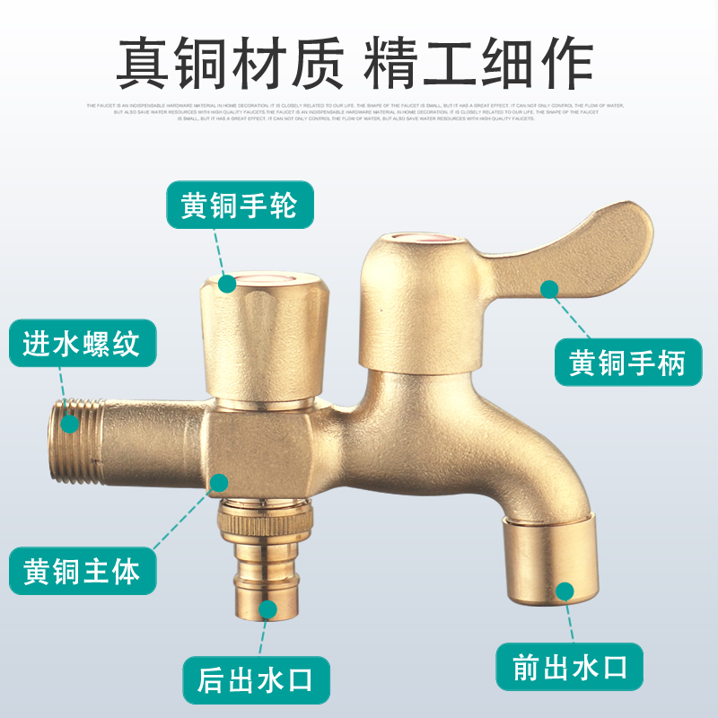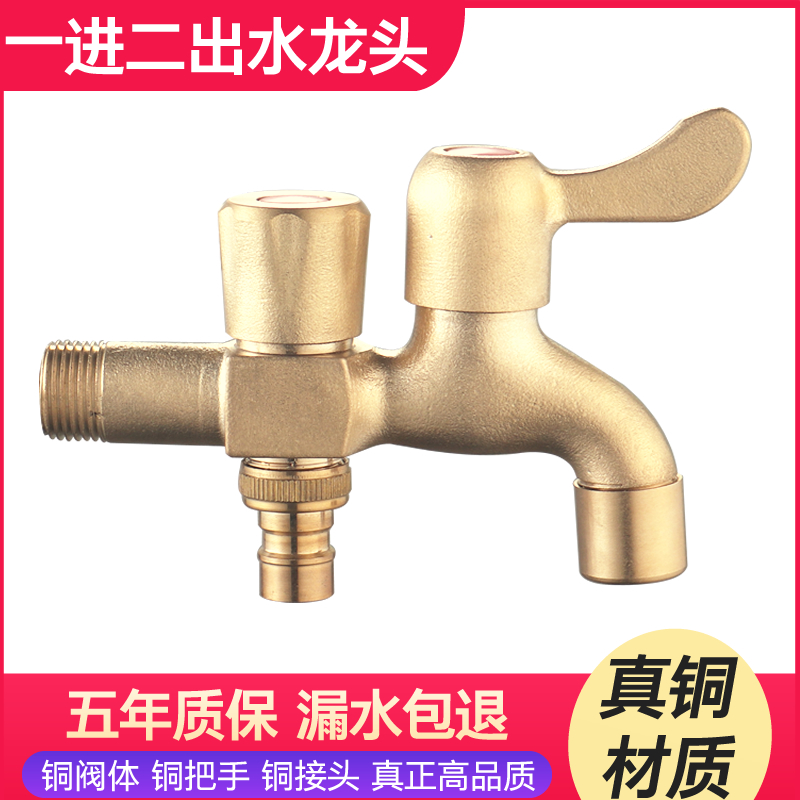 Washing machine faucet one point two joints one in two out double head double use double out lengthened 4 points single cold shunt